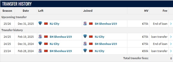 德转更新,南京城市续租上海申花中场朱启文一个赛季。