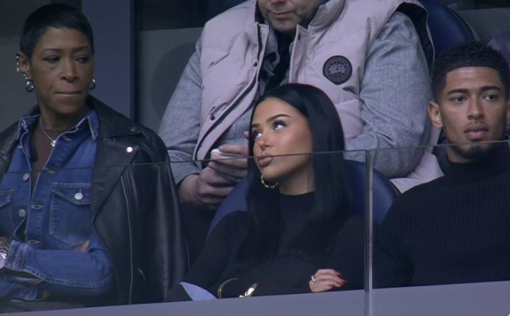 在对阵赫罗纳的比赛中,贝林厄姆停赛无法出战,他出现在了伯纳乌球场的看台观看本场比赛,他和女友、妈妈坐在一起。