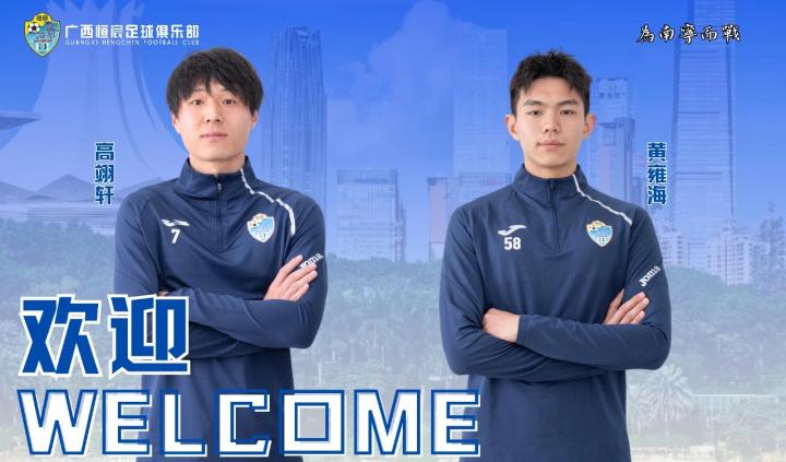 北京时间2月24日,广西恒宸官方宣布,青岛海牛球员高翊轩、上海海港球员黄雍海租借加盟俱乐部。