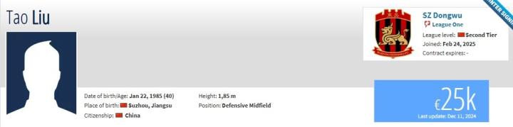 德转更新,40岁的原成都蓉城后卫刘涛自由身重返苏州东吴。