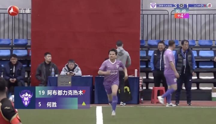 何胜是在第91分钟替补出场,当时球队3-1领先,他上场后,对方打进一球,但最终天山花海还是3-2赢得比赛。
