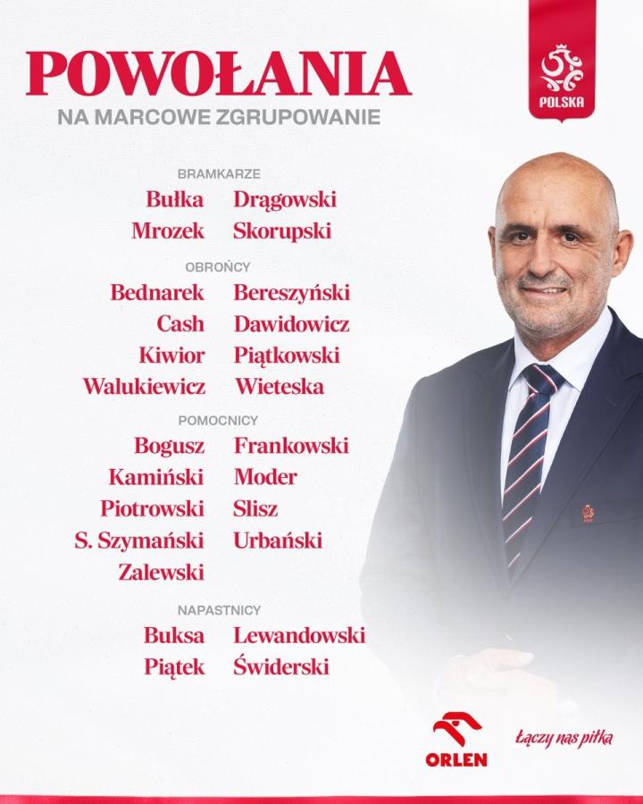 北京时间3月14日,波兰队公布了新一期的大名单,莱万多夫斯基领衔,基维奥尔、卡什在列。