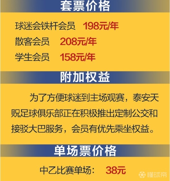 “会当凌绝顶,战斗为泰安”!3月18日晚,中乙泰安天贶足球俱乐部公布新赛季年票和散票方案:年票价格158-208元,单场票价格38元。