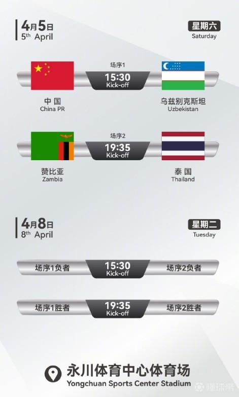3、参赛队:中国国家女子足球队、赞比亚国家女子足球队、泰国国家女子足球队、乌兹别克斯坦国家女子足球队