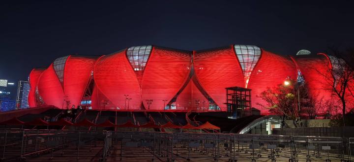 3月25日晚19点,世预赛18强赛第8轮,中国男足将坐镇杭州奥体中心体育场(又名“大莲花”)迎战澳大利亚。大战前夜,“大莲花”外立面“花瓣”亮起中国红,为国足将士助威。