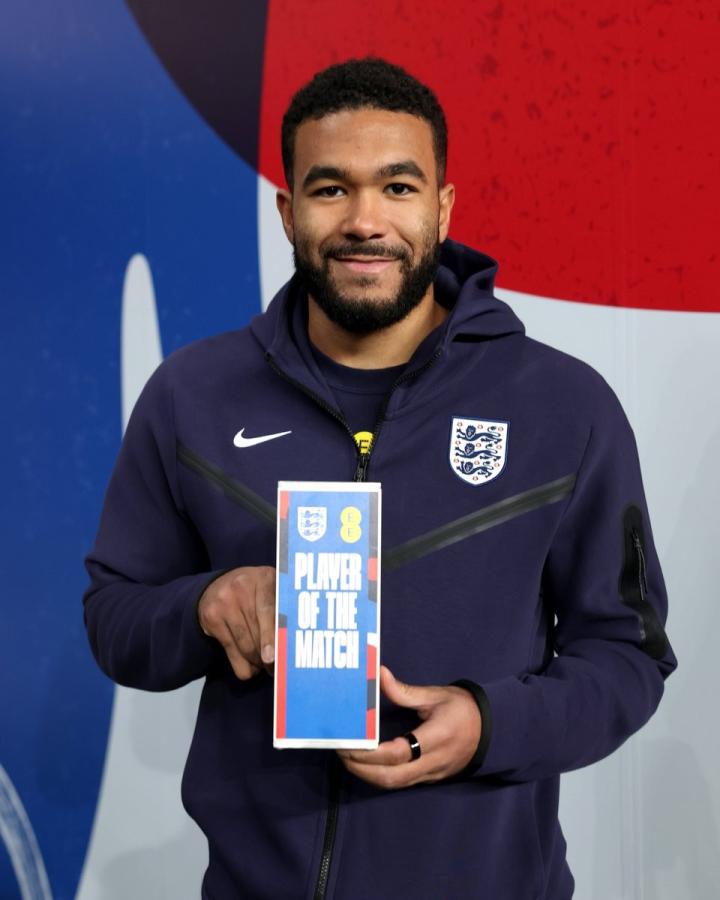 英格兰队官方宣布,打入一球的里斯-詹姆斯当选球队与拉脱维亚一役最佳球员。