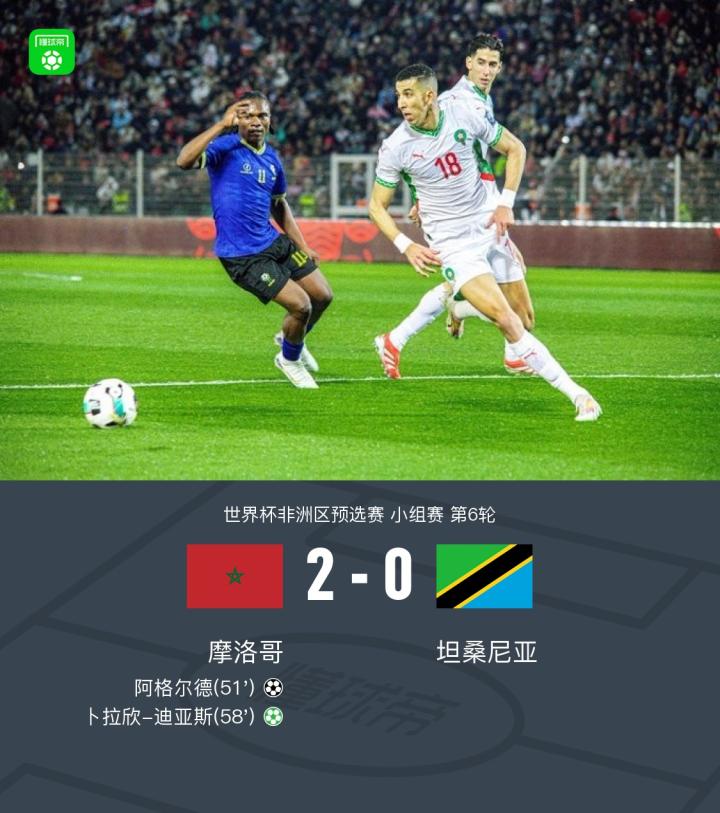 摩洛哥2-0坦桑尼亚,卜拉欣-迪亚斯点射,阿格尔德建功