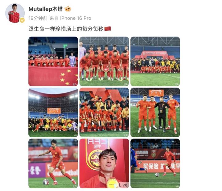 木塔在社交媒体上晒出了一些比赛瞬间,他写道:跟生命一样珍惜场上的每分每秒🇨🇳