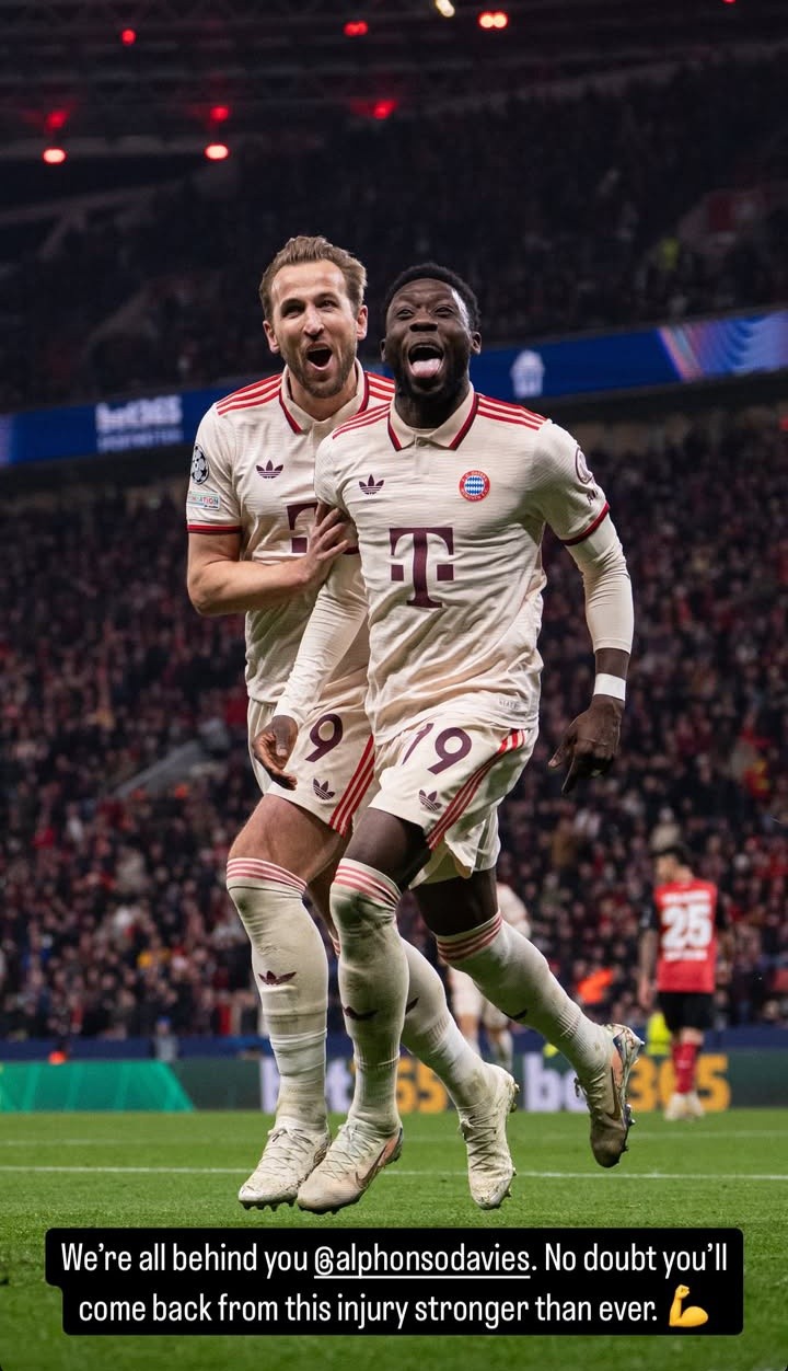3月26日晚,凯恩在社交媒体上发表动态,向阿方索-戴维斯送上了祝福:“我们都在你背后支持你,毫无疑问,你会以更强的姿态从这次伤势中回归。”
