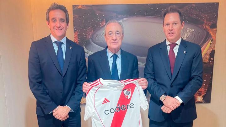 在此期间,这两名贵客还得到了皇马主席弗洛伦蒂诺的接见,他们也向弗洛伦蒂诺赠送了一件河床球衣以作纪念。
