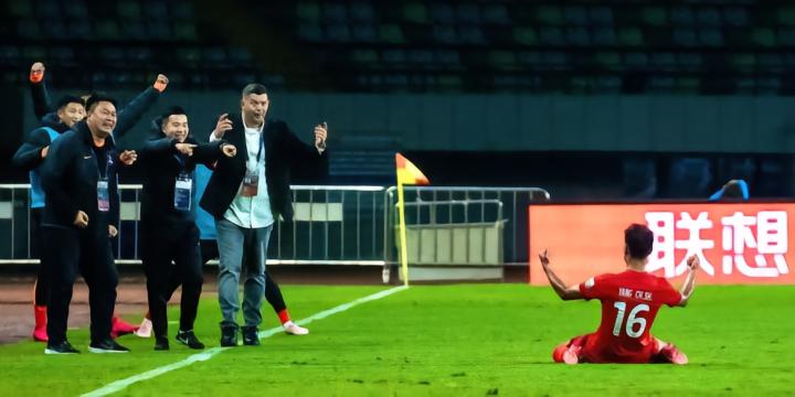 本场面对山东泰山,比赛第20分钟,杨超声攻入一脚精彩的倒钩破门。相关新闻阅读——【杨超声本赛季中超3场打进3球,超过上赛季25场进球数】