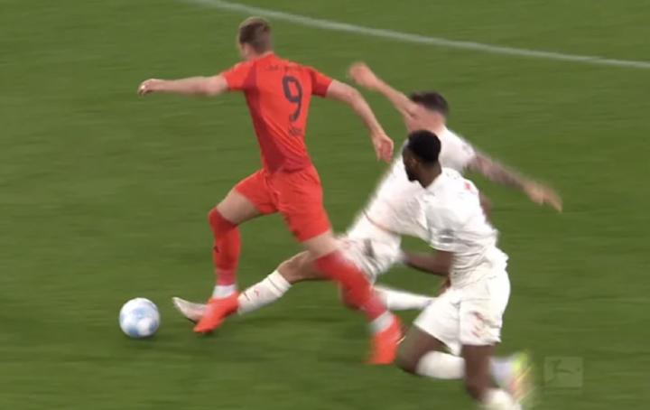 在本场比赛中,奥格斯堡球员泽西格尔对凯恩犯规,被出示了黄牌,他也因此两黄变一红被罚下。