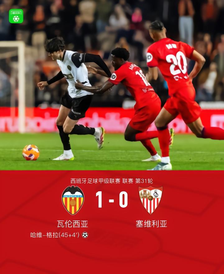 瓦伦西亚1-0塞维利亚,哈维-格拉一击制胜,洛佩斯助攻
