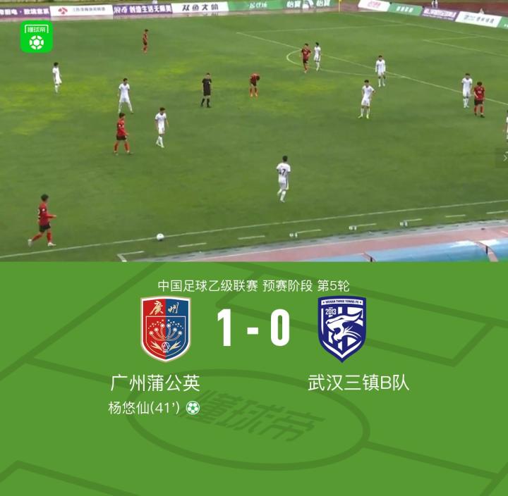 广州蒲公英1-0武汉三镇B队取中乙4连胜,杨悠仙点射制胜