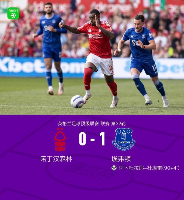 诺丁汉森林0-1埃弗顿,杜库雷反击献绝杀,穆里略失误送礼