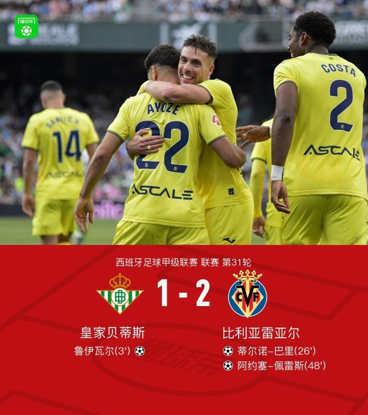 贝蒂斯1-2比利亚雷亚尔,佩雷斯传射建功,鲁伊瓦尔闪击