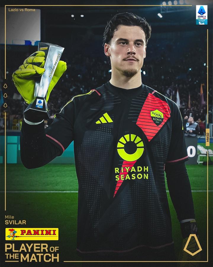 官方消息,斯维拉尔当选拉齐奥对阵罗马一役全场最佳。