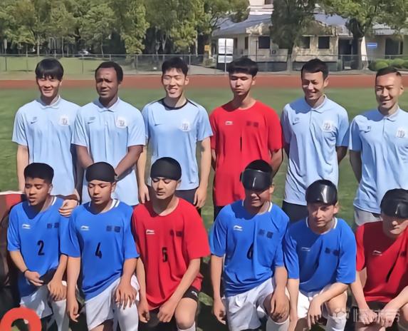 据报道,在今天下午的训练开始前,上海申花的队员们和新疆“喂喂喂”盲人足球队的小队员们,在基地中心球场进行了互动。吴曦、艾迪、高天意、朱辰杰、周正凯戴上眼罩,感受了盲足的训练内容。