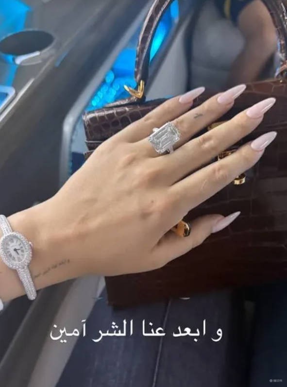 她在照片下用阿拉伯语配文:“愿邪恶远离我们”,而她身上似乎也纹有同样的字样,不过到目前为止,她和C罗并未正式宣布结婚。