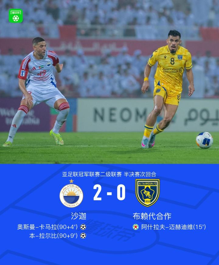 沙迦总比分2-1逆转布赖代合作晋级决赛,卡马拉、本-拉尔比破门