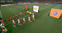 双方球员步入球场,大战即将打响