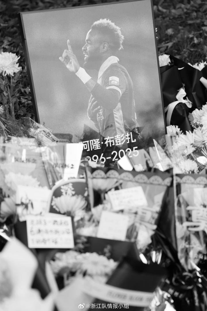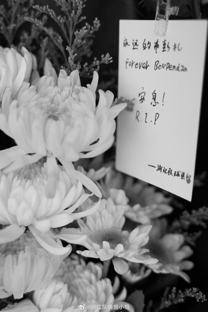 北京时间4月17日,根据体育博主“浙江队情报小组”拍摄的现场照片,浙江队球迷在浙江职业足球俱乐部门口献花悼念布彭扎,并且表达了自己的哀思。