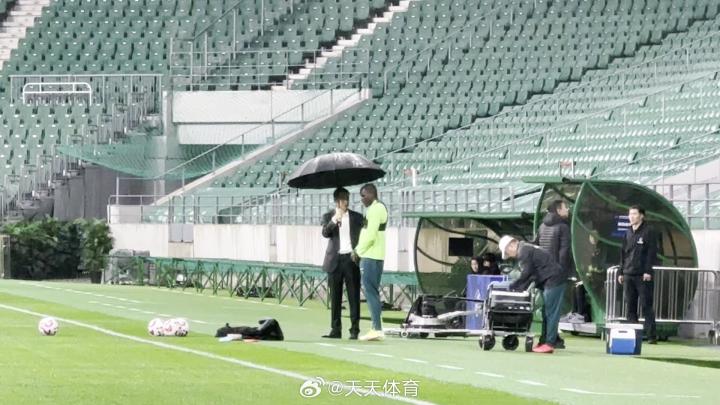 据报道,恩加德乌现身踩场训练。训练之前,董事长周金辉打着伞和他聊了近两分钟。