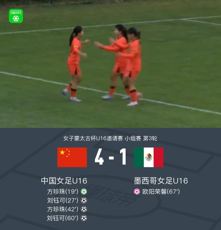 U16女足国少4-1墨西哥女足U16晋级决赛,刘钰可、方珍珠双响