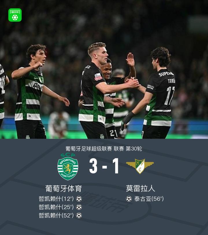 葡萄牙体育3-1莫雷拉人,哲凯赖什戴帽