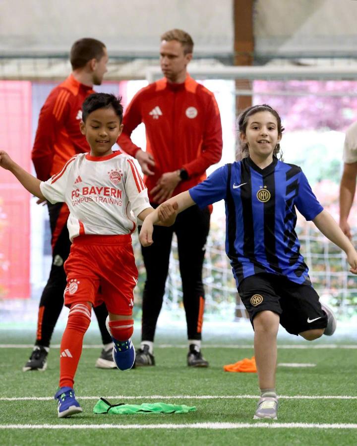 拜仁官方表示:场上是对手,场下是公益项目好朋友。在欧冠八强战举行期间,我们与国际米兰为生活困难的儿童们提供了足球训练支持,并来到了米兰的儿童医院,为正在与白血病作斗争、并参与运动疗法的孩子们组织了一场训练课。