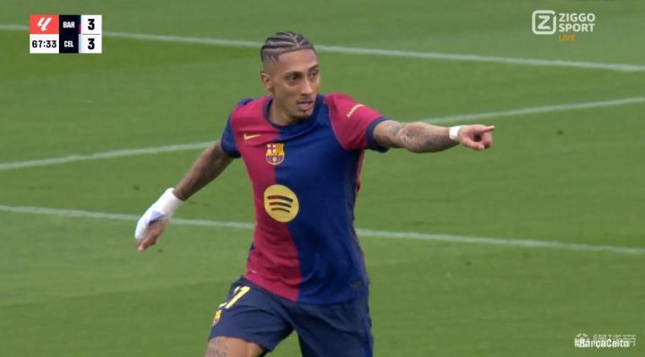 此役主场对阵塞尔塔,拉菲尼亚在比赛第64分钟助攻奥尔莫破门,不到5分钟后接亚马尔助攻破门,帮助巴萨3-3扳平比分。