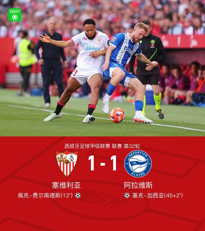 塞维利亚1-1阿拉维斯,佩克破门,基克-加西亚救主