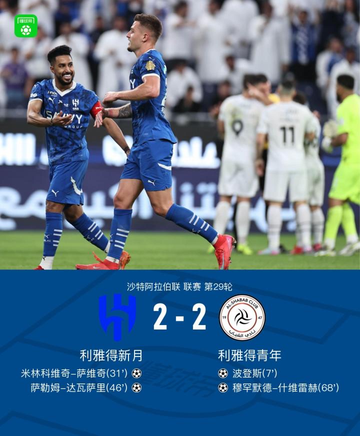 新月2-2利雅得青年,达瓦萨里、米林科维奇建功,波登斯破门
