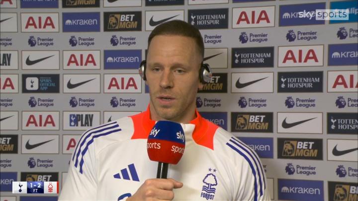 在英超第33轮客场2-1击败托特纳姆热刺之后,诺丁汉森林门将泽尔斯接受了来自天空体育的采访。