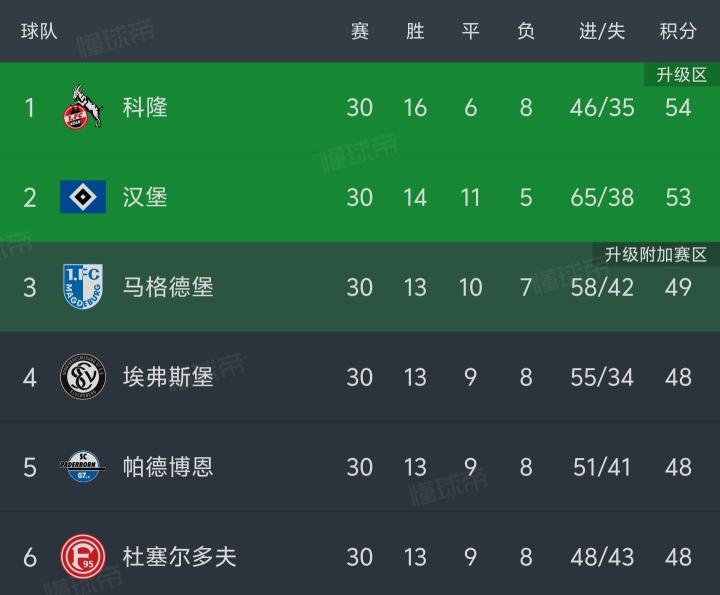 本赛季德乙联赛还剩下4轮,汉堡领先第3位的马格德堡4分。