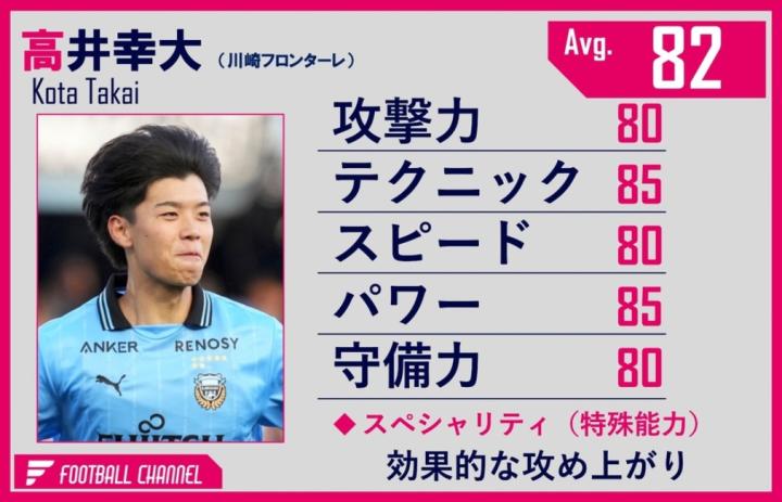 高井幸大最大的强项在于后场组织,无论是一脚出球,还是带球压上甚至送出直塞,都已跻身J联赛顶级水准。随着国家队历练的积累,他的领袖气质正悄然成型。