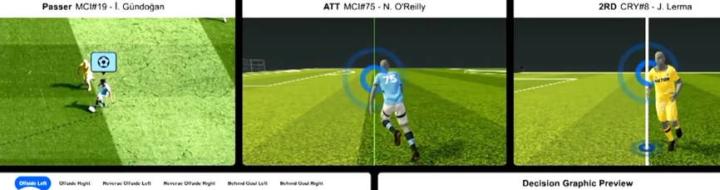 “这就是我们做出越位判断的时刻,并将其输入系统,基于此,我们可以识别相关球员的位置,即参与进攻的球员以及我们关注的倒数第二名防守球员的位置。”