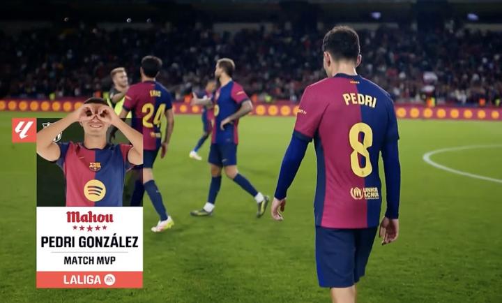 西甲第33轮,巴塞罗那主场1-0击败马略卡,此役创造6次机会的巴萨中场佩德里当选西甲官方全场最佳球员。