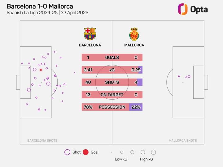 此役主场对阵马略卡,巴塞罗那在上半场完成24次射门,但一球未进,下半场巴萨又完成了16次射门,由奥尔莫在下半场开场第1分钟打入全场唯一进球。