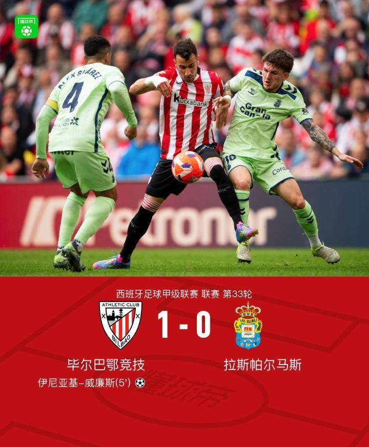 毕尔巴鄂竞技1-0拉斯帕尔马斯,伊尼亚基-威廉斯一剑封喉