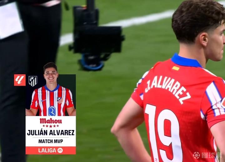 官方消息,胡利安-阿尔瓦雷斯当选马德里竞技对阵巴列卡诺一役全场最佳。