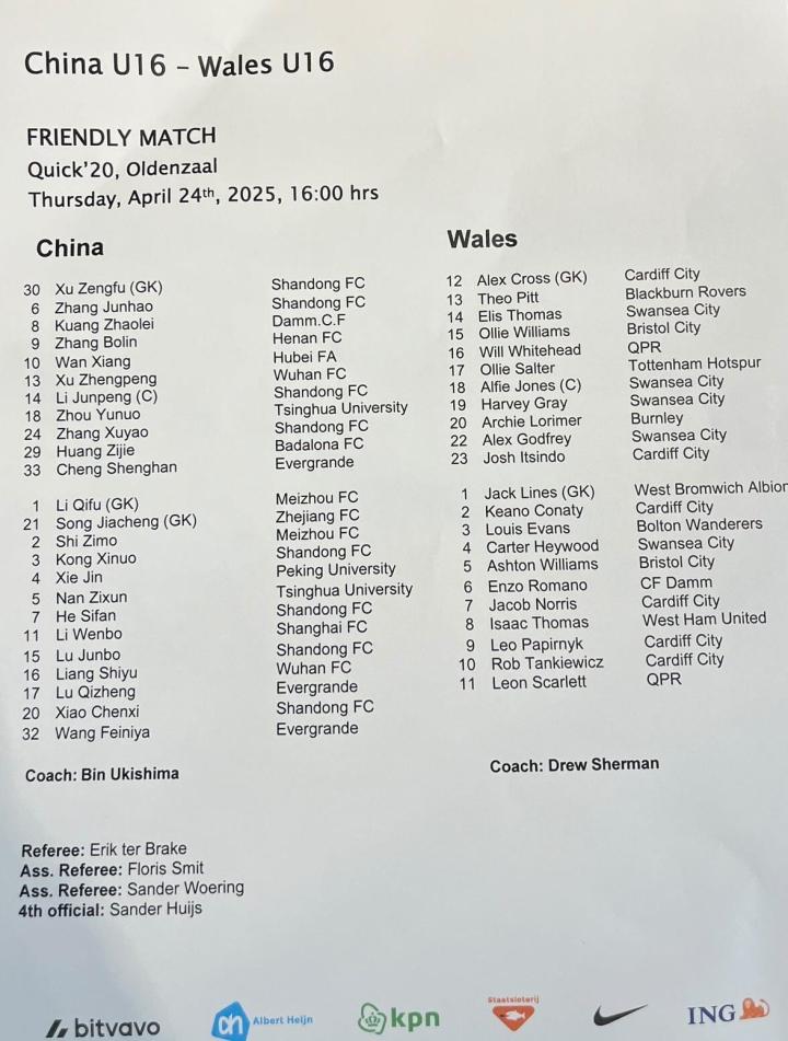 北京时间4月24日晚间,正在荷兰拉练的U16国少与威尔士U16进行了一场友谊赛,最终双方在常规时间战成1-1,点球大战5-6不敌对手。