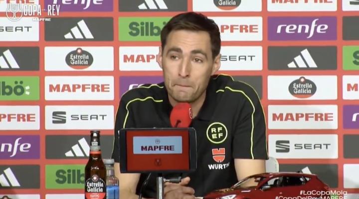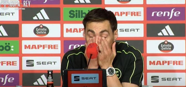 巴塞罗那和皇家马德里将在国王杯决赛交锋,今日本场比赛的主裁判布尔戈斯出席了赛前的新闻发布会,谈到了此前皇马电视台对他的攻击。在发布会上,布尔戈斯不禁流下了眼泪。