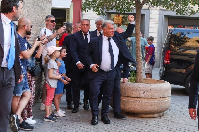 国王杯决赛前夕,巴萨主席拉波尔塔抵达赛前晚宴。