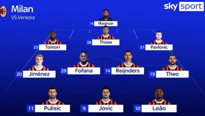 北京时间4月26日,意大利天空体育预测了意甲第34轮AC米兰客场对阵威尼斯的首发名单。