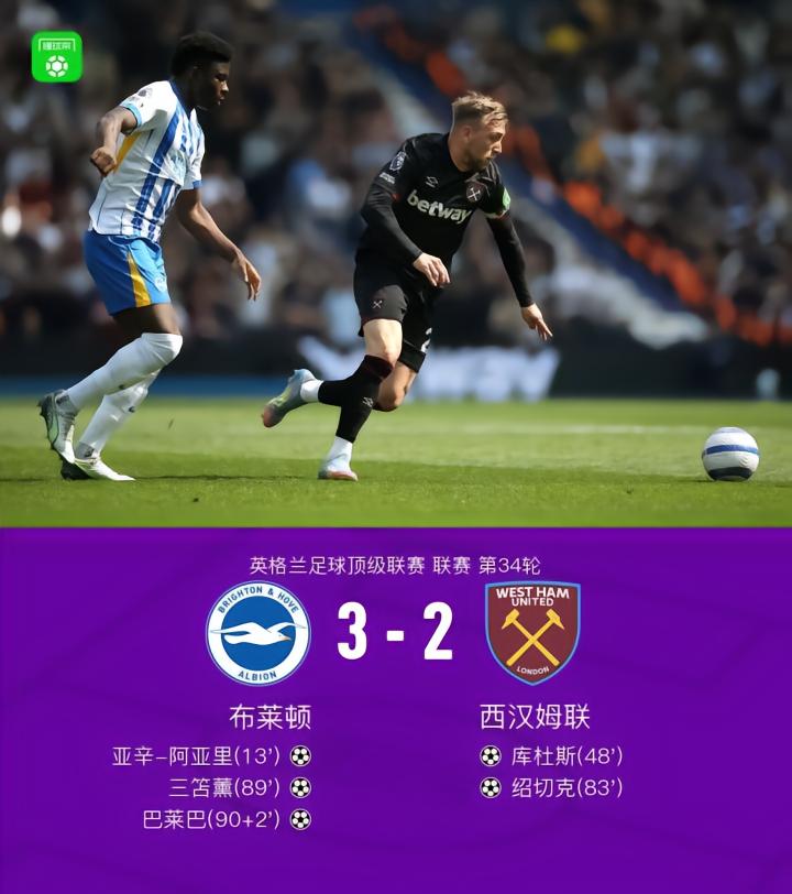 布莱顿3-2西汉姆联,巴莱巴世界波绝杀,三笘薰建功