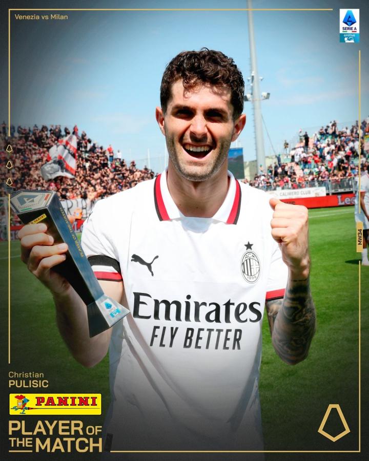 官方消息,普利希奇当选威尼斯对阵米兰一役全场最佳。