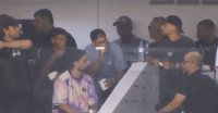 镜头给到看台,内马尔在悠闲地吃着东西聊着天