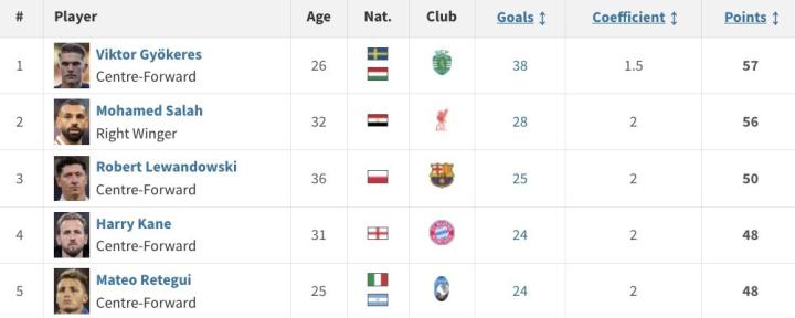 欧洲金靴奖奖项由法国杂志《法国足球》于1967年设立,旨在表彰在欧洲顶级联赛中进球效率最高的球员,此外,各国联赛的积分系数不同。