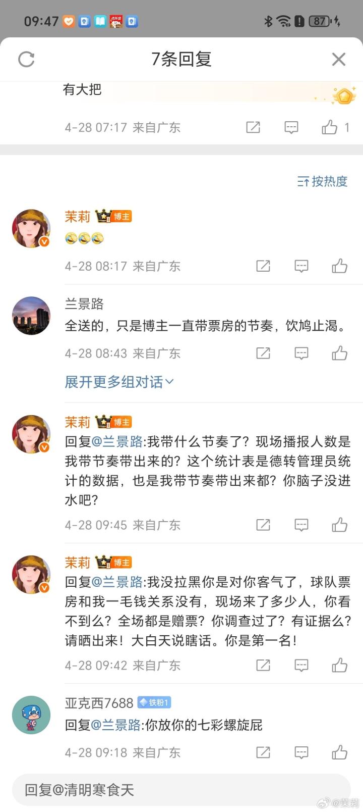另外,我怎么带票房的节奏了?这些数字是我带出来的?你有去过现场么?你没去过现场也可以看视频啊?那都是带节奏带出来的?还有,你说的“全是送的“证据有么?请晒出来!